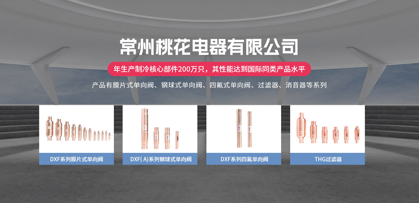 常州桃花電器有限公司地處中國長江“金三角”之稱的上海至南京高速公路、城際高鐵、常州高新經(jīng)濟技術開發(fā)區(qū)路段,交通便利、技術力量十分雄厚。它是集研究、開發(fā)設計、制造和經(jīng)營制冷核心部件的企業(yè),主要生產(chǎn)中央空調(diào)上使用的制冷部件。產(chǎn)品有膜片式單向閥、鋼球式單向閥、四氟式單向閥、過濾器、消音器等系列。年生產(chǎn)制冷核心部件200萬只,其性能達到國際同類產(chǎn)品水平。  企業(yè)擁有先進的科學技術、國際先進的生產(chǎn)加工設備和精密的檢測儀器,并已通過ISO9001質(zhì)量體系及CE認證,公司歷史悠久,2000年起,經(jīng)過長期積累、沉淀,經(jīng)驗豐富,從而保證了產(chǎn)品的高質(zhì)量、高性能、高耐用性。企業(yè)產(chǎn)品在國內(nèi)外市場具有較高的知名度,深受眾多中外品牌制冷客商的好評。主要客戶有約克、麥克維爾、美的、開利、特靈、頓漢布什、清華同方、天加等.并出口北美、歐洲、東南亞等地區(qū)。  高品質(zhì)產(chǎn)品是企業(yè)的保證,周到服務是合作友誼的承諾,企業(yè)本著“求